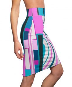 Womens Skirt, Pink and Blue High Waist Pencil Skirt, S19817